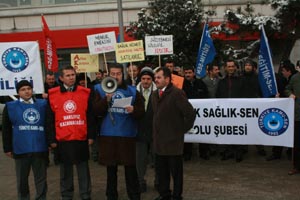 Eyleme Türk Sağlık Sen Şube Başkanı Hakan Koca, Türk Diyanet Vakıf Sen Şube Başkanı Metin Saltan, Türk Büro Sen İl Temsilcisi Fahri Baylav, Türk Tarım Orman Sen İl Temsilcisi Erdal Oturakkaya, Türk İmar Sen Temsilcisi Muhsin Karagüzel, Türk Haber Sen İl Temsilcisi Mehmet Oruç, Türk eğitim Sen Bolu Şube Başkanı Fikret Başar katıldı.