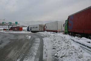 İki gündür yoğun kar yağışı nedeniyle yola çıkmalarına izin verilmeyen TIR ve tanker sürücüleri dün kar yağışının durması ve sabah saatlerinde yolların açılmasıyla yola çıktılar.