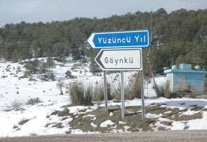 Tarihi Göynük İlçesinin ismini trafik tabelasına yanlış yazdılar Fatih Sultan Mehmet'in hocası Akşemsettin hazretlerinin türbesi bulunan Göynük ilçesinin ismi, trafik tabelalarına "Göynkü" olarak yansıdı. Mudurnu-Nallıhan kara yolu üzerinde bulunan Mudurnu ilçesine bağlı Yüzüncüyıl köyü içindeki yönlendirme levhasında "Göynkü" yazısı, görenleri hayrete düşürüyor. Ekiplerin farkına varmadan montajını yaptıkları tabelayı görenler, bu yanlışın nasıl yapıldığına hayret ediyorlar.