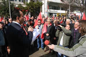 CHP İl Başkanı Tanju Özcan, dün Akbank önünde rektörlük seçimleri ve sonrasında yaşanan olaylarla ilgili bir açıklama yaptı. Özcan?a destek vermek amacıyla CHP?li üyeler, Eğitim-Sen Bolu Şubesi, Cumhuriyet Kadınları Derneği Bolu Şubesi ve Halkevleri de meydandaki yerini aldı. İzzet Baysal heykelinin önünde açıklamada bulunan Tanju Özcan, Ahmet Baysal?a cumhurbaşkanının randevu vermesine tepki göstererek; ?Sayın Cumhurbaşkanı devlet üstün hizmet madalyası sahibi merhum İzzet Baysal?ın yeğeni ve vakıf başkanı Ahmet Baysal?a randevu vermeyip kime randevu verecektir?? dedi.