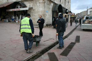 Geçtiğimiz hafta yağan karın ardından yağmurlu hava Bolu?yu hâkimiyeti altına almıştı. Yağmurun ardından eriyen kar ve sokakların pisliği birleşince Yukarı Çarşı adeta çöplüğe dönüşmüştü. Son zamanlarda ise havaların güneşli olmasını fırsat bilen Bolu Belediyesi Fen İşleri Müdürlüğü ekipleri, dün akşamüzeri su logarlarını temizlemeye başladı. Yukarı Çarşı?da bulunan su logarlarını temizleyen belediye ekipleri, temizleme çalışmalarını aralıksız olarak sürdürüyor. Logarların temizlendiğini gören Yukarı Çarşı esnafı da rahat bir nefes aldı.