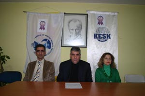 Sağlık ve Sosyal Hizmet Emekçileri Sendikası (SES) Bolu Şube Başkanı Serdar Koçyiğit, dün saat 17.30?da Eğitim-Sen Toplantı Salonunda bir basın açıklaması yaptı. Tekel işçilerinin direnişini ele alan Serdar Koçyiğit; ?Tekel işçileri özelleştirme sonucunda ya iş güvencesiz ve düşük ücretle çalışacağınız iş yerlerine gidersiniz ya da kapı önüne atılırsınız seçeneğiyle yüz yüze bırakıldılar. Ancak Tekel işçileri iki tercihi de reddederek kadrolu çalışmaya devam etmek için mücadeleyi seçtiler.? dedi.
