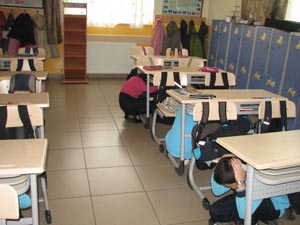 Özel Melih İlköğretim Okulu öğretmenlerinin, öğrencilerini depreme karşı bilinçlendirmek amacıyla yaptıkları tatbikat siren sesi ile başladı. Bulundukları yerin en güvenli bölümlerinde hayat üçgeni oluşturarak cenin vaziyeti alan öğrenciler, depremden nasıl korunacaklarını öğrendi. Yapılan tatbikatta deprem anında nasıl davranmaları gerektiği uygulamalı olarak anlatıldı. Sınıflarda cam kenarları ve dolaplardan uzak bölgeler belirlenerek, en güvenli yerler toplanma alanı olarak tespit edildi. Tatbikat, öğrencilerin okulu en kısa sürede güvenli bir şekilde boşaltmasıyla gerçekleştirildi. Belirlenen güvenli noktalarda toplanan öğrenciler, olası bir depremde geçmişte yaşanan acıları tekrar yaşamamak için depremde nasıl davranılması gerektiğini öğrendiler.