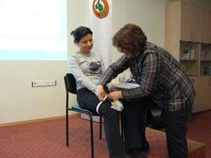Damar bütünlüğünün bozulması sonucu kanın damar dışına (vücut içine veya dışına doğru) çıkmasına kanama dendiğini, kanamanın ciddiyetini, kanamanın hızına, bölgesine ve miktarına yaralının fiziksel durumu ile yaşına bağlı olarak değiştiğini dile getiren Dr. Kırzi Önal, kanama çeşitleri üzerinde durarak uygulamalı olarak dinleyenlere anlattı. Konferansta kanama durumunda ilkyardım hakkında katılımcılara detaylı bilgiler aktarıldı. Son olarak; kaza anında hasta yâda yaralının nakledilmesi zaruri durumlarda, etrafta her hangi bir boyunluk yok ise, boyun omurlarının hareket kabiliyetini kısıtlayarak hastanın boynunu sabitlemek için çok basit bir boyunluk yapma konusunda ipucu veren Dr. Kırzi Önal, etrafta bulduğumuz bir gazeteden basit bir boyunluk yapıp hasta yâda yaralıya tatbik etme tekniğini göstererek bu haftaki İlk Yardım konuları bitirdi.