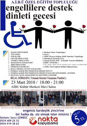 Engellilere Destek Gecesi için biletler 5 TL?ye satılırken, elde edilen gelir, engelli öğrenciler için harcanacak.