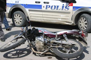 Dün öğle saatlerinde hareket halindeki polis aracına kırmızı ışıkta geçen bir motosiklet yandan çarptı. Olay dün İzzet Baysal Caddesi bankalar önündeki trafik ışıklarında meydana geldi. M.D. kullandığı motosikletle kırmızı ışıkta geçti. M.D. yönetimindeki motosiklet, kendisine yeşil ışık yandığı için hareket eden polis otosu çarptı. Kaza sonrası yaralanan M.D. tedavisi yapılmak üzere Köroğlu devlet hastanesine kaldırıldı. Tarafsız soruşturma yapılabilinmesi için, jandarma ekipleri olay yerine geldi.
