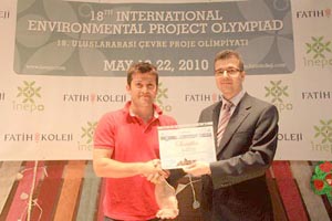 Dünyada artan çevre sorunlarının çözülmesi ve çevrenin korunup iyileştirilmesi konusunda gençlerin bilinçlendirilmesini ve ortak bir platformda çözümlerini paylaşmasını amaçlayan İnepo Çevre Proje yarışmalarına bu yıl 44 ülkeden 110 proje ve 190 öğrenci katıldı. İnepo Çevre Derneği?nin organize ettiği olimpiyatların ödül töreni önceki gün Fatih Koleji?nde gerçekleştirildi.