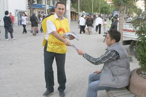 KESK üyeleri basın açıklamasının ardından İzzet Baysal Caddesi?nde bildiri dağıtarak vatandaşları Greve davet ettiler.