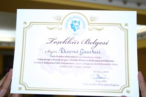 Türk Ocakları Bolu Şubesi gazetemiz Bolu Express?e teşekkür belgesi verdi. Türk Ocakları Bolu Şubesi Başkanı Eyüp Ahi, Türk Ocakları Bolu Şubesi?nin düzenlediği ?Vatan sevgisi, bayrak sevgisi, Türklük bilinci ve kahraman şehitlerimiz? konulu 5. Geleneksel Şiir Yarışmasına yaptığımız destek nedeniyle gazetemize teşekkür belgesi verdi.