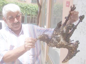 MENGEN ilçesinde yüksek gerilim hattına çarpan kartal yanarak telef olurken, düştüğü tarlada anız yangınına neden oldu. Alınan bilgiye göre, ilçeye bağlı Yellicedemirciler köyünden geçen 30 bin voltluk yüksek gerilim hattının tellerine takılan kartal yanarak telef oldu. Yanan kartal, buğdayı biçilmiş tarlaya düşerek anız yangına sebep oldu. Tesadüfen bölgeden geçen Mehmet Karabaş, alevlerin çevresini traktörüyle sürerek yangının buğday tarlalarına sıçramasına engel oldu.