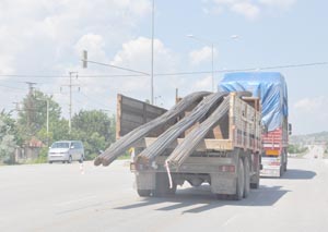 Bolu?da, bir kamyonetin kasasına tedbir alınmadan yüklenen demirler, araç sürücülerini korkuttu. D-100 Karayolu Paşaköy mevkiinde ilerleyen demir yüklü bir kamyonet, sürücülere korkulu anlar yaşattı. Kasaya yüklenen demirlerin gelişigüzel yerleştirilmesi ve hiçbir güvenlik önleminin alınmaması; aynı istikamette seyreden araç sürücülerini korkuttu. Kasislerden geçerken sallanarak yola saçılma tehlikesi bulunan demirlerin kasaya sabitlenmemesi ?Bu kadar dikkatsizlik olmaz? dedirtti