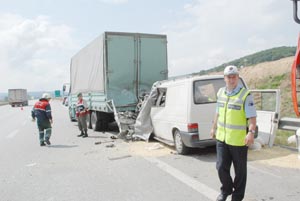 Bolu TEM Otoyolu?nda bir kamyona arkadan çarpan minibüste bulunan iki kişi hayatını kaybetti. Trafik canavarı Bolu?da iki can daha aldı. Bolu TEM Otoyolu?nda meydana gelen trafik kazasında 2 kişi yaşamını yitirdi. Otoyolun Abant Kavşağı mevkiinde meydana gelen kazada 27 J 7240 plakalı minibüs, arızası nedeniyle park halinde bulanan 34 DH 6299 plakalı kamyona arkadan çarptı. Kazada henüz ismi belirlenemeyen minibüs sürücüsü ile yanındaki bir kişi hayatını kaybetti. Kaza nedeniyle bir süre trafik kontrollü olarak verildi.