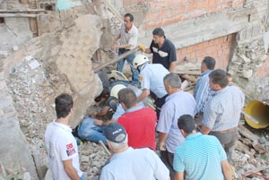 Hisar Tepesi'nde bulunan tarihi Stadion'un bulunduğu bölgede inşaat temizliği yapan iki belediye işçisi devrilen duvarın altında kalarak yaklaşık bir saat yaşam mücadelesi verdi.