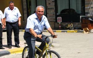 Mengen Belediye Başkanı Osman Erarslan, pazar günü esnaf ziyaretlerini bisikletiyle yaptı.