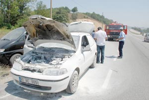 Bolu?da bir otomobilin ön kısmında meydana gelen yangın korkulu anlar yaşattı. Olay, D-100 kara yolu Abant sapağına mevkiinde meydana geldi. Sezgin T.?nin kullandığı 81 BC 605 plakalı otomobilin ön kısmından henüz belirlenemeyen bir nedenle alevler yükseldi. Alevler, çağrılan itfaiye ekibinin müdahalesine gerek kalmadan yangın tüpleriyle söndürüldü.