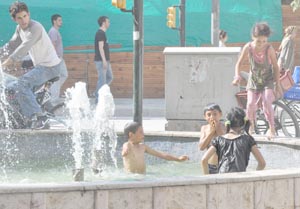 Sıcaktan bunalan çocuklar İzzet Baysal Caddesi üzerinde ki ve belediye önünde bulunan pis havuzlara girerek serinlemeye çalışıyorlar.