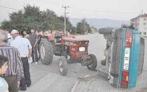 Dün ilimizde meydana gelen kazada 14 BR 076 plakalı traktör sürücüsü karşı yönden gelen otomobile çarparak, otomobilin devrilmesine sebep olduktan sonra panik yaparak olay yerinden kaçtı.