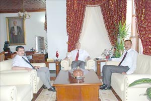 Valilik önünde Vali İbrahim Özçimen tarafından karşılanan Düzce Valisi Vasip Şahin ile Düzce Belediye Başkanı İsmail Bayram, Valilik şeref defterini imzaladıktan sonra Valilik Makamına geçtiler. Sohbet ortamında geçen ziyarette, Vali Özçimen, Düzce Valisi Şahin ile Düzce Belediye Başkanı Bayram?a ziyaretinden dolayı teşekkür etti. Daha sonra Vali İbrahim Özçimen, ziyaret anısına Düzce Valisi ile Düzce Belediye Başkanı?na üzerinde Türk motiflerinin bulunduğu Bolu Valiliğinin isminin de yer aldığı bir tabak takdim etti.