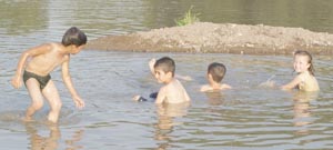 ESKİ MENGEN Yolu üzerinde bulunan Büyüksu deresinde ölüme meydan okuyan çocuklar faciaya davetiye çıkarıyor. Aşırı sıcaktan bunalan çocuklar dereye girerek serinlemeye çalışıyor.