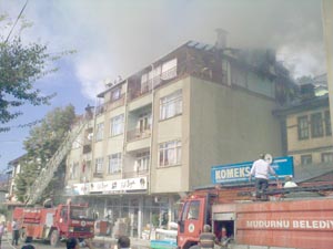 Mudurnu ilçesinde, bir apartmanın en üst katında çıkan yangın korkuttu. Yangın, itfaiyenin müdahalesiyle bir süre sonra kontrol altına alındı. Henüz çıkış nedeni belli olmayan yangında alevler kısa sürede büyüdü. Yangının büyümesi panik dolu anların yaşanmasına neden oldu. Yangına, Mudurnu Belediyesi İtfaiye ekipleri müdahale ederken, bazı vatandaşlar da evlerinin balkonunda hortumla yangına su tuttu. Bu esnada evde bulunan Huri Bozoğlu balkonda yardım feryadında bulundu. Bozoğlu'nun yardımına itfaiye ekipleri koştu. Huri Bozoğlu, itfaiye merdiveniyle aşağıya indirilirken, vatandaşlar da korku dolu gözlerle yangını izledi. Ekipler, vatandaşları yangın mahallinden uzaklaştırmada güçlük çekti. Yangınla ilgili soruşturma başlatıldı.