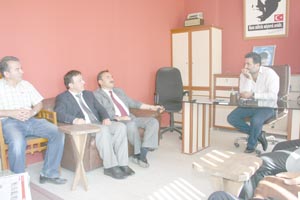 Gazeteciler ile sohbet eden Rektör Coşkun daha sonra cemiyet üyeleriyle cemiyet hizmet binası önünde topluca hatıra fotoğrafı çektirdi.