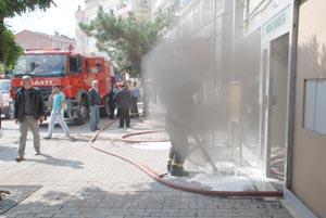 Tadilatta olan Vakıf Bank?ın kazan dairesinde yangın çıktı.