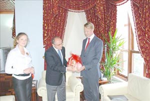 Estonya Büyükelçisi Aivo Orav, Vali İbrahim Özçimen?i makamında ziyaret etti. Valilik Şeref Defterini imzalayan Büyükelçi Aivo Orav, daha sonra Vali İbrahim Özçimen ile birlikte makama geçti. Estonya Büyükelçisi Aivo Orav?ı Bolu?da görmekten dolayı çok mutlu olduğunu dile getiren Vali İbrahim Özçimen; ?Estonya Büyükelçiliği?nin ilimize olan ilgisini biliyorum. Ziyaretlerinizden dolayı son derece memnun olduğumu ifade etmek isterim. Herhalde bundan sonra daha sık görüşeceğiz? dedi. Bolu?ya daha önce de geldiğini ve çok beğendiğini söyleyen Büyükelçi Aivo Orav da, Vali İbrahim Özçimen?e önceki yıllarda Bolu?da yapmış oldukları organizasyonlar hakkında bilgiler verdi. Ziyaret sonrası Büyükelçisi Orav ziyaret anısına Vali Özçimen?e Estonya tanıtım kitapçığı ve tanıtım CD?si takdim etti. Vali İbrahim Özçimen de Büyükelçi Aivo Orav?a içinde Bolu?ya ait yöresel ürünlerden oluşan hediye sepeti ile tanıtım çantası verdi.