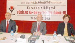 Devlet Bakanı Mehmet Aydın, TÜBİTAK?ın Abant?taki Büyük Abant Otel?de düzenlediği ?Karadeniz Bölgesi TÜBİTAK AR-GE ve Yenilik Günü? toplantısına katıldı. Bakan Aydın, toplantı öncesinde TÜBİTAK Başkanı Prof. Dr. Nüket Yetiş ve Vali İbrahim Özçimen ile birlikte basın toplantısı düzenledi.