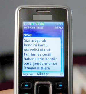 Emniyet Genel Müdürlüğü tarafından yaklaşık iki ay önce kontör dolandırıcılarına yönelik büyük operasyon yapmasının ardından son gülerde yine dolandırıcılık olaylarının artması üzerine vatandaşları uyarıyor. Vatandaşlara SMS gönderen Emniyet Genel Müdürlüğü vatandaşların kontör dolandırıcılarına karşı daha uyanık olmasını istiyor. Gönderilen SMS'de, "Sizi arayarak kamu görevlisi olarak tanıtan ve çeşitli bahanelerle kontör, para göndermenizi isteyen kişilere itibar etmeyiz. Böyle bir durumda 155 polis ihbar hattını arayınız" deniliyor.