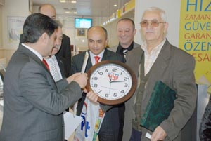 Gökdoğan, PTT Bolu merkez şubesinde bugün 170. sırada işlem yaptıran emekli Murat Yılmaz'a, pul albümü, saat ve kıravat hediye etti.