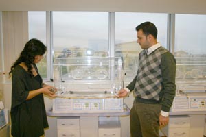 Özel Dünya Kadın Hastalıkları ve Doğum Hastanesi sahibi ve mimarı Gökhan Adak?la birlikte hastaneyi gezdik. Yeni yapılan lüks hastanenin tüm birimlerini gezerek birim görevlilerinden bilgiler aldık. İlk olarak hastane odalarını gezdik. Tek kişilik ve çift kişilik odaları ziyaret ettiğimizde direkt oda dizaynı göze çarptı. Hiçbir masraftan kaçınılmadan her şeyin en iyisini yapmayı amaçladıklarını söyleyen Gökhan Adak, odayı gezdirerek oda hakkında en ince ayrıntısına kadar bilgi verdi. Yatakların konforunun yanında, gömme dolabın ve banyonun bulunmasının büyük avantaj olduğu düşünülen odalarda banyo ve tuvalet de oldukça lüks. Yeni doğan bebeklerin konulduğu Küvöz odasına uğradık. Son teknolojiyle hazır olan odada bebekler için her şeyin en iyisi düşünülmüş.