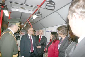 Dün yapılan Cumhuriyet Bayramı kutlamaları sonrasında, Vali İbrahim Özçimen, Garnizon Komutan Vekili Albay Ümit Yücekan ve Belediye Başkanı Alaaddin Yılmaz, Bolu Belediyesi?nin gezici eğitim aracını incelediler. Başlangıç olarak deprem, trafik ve ilk yardım konularında eğitim verecek olan eğitim aracında ilk dersi Vali İbrahim Özçimen?in yapmasını istenmesi üzerine, Vali Özçimen?den olumlu yanıt geldi. Belediye?nin bu projesini çok beğenen vali, Belediye Başkanı Alaaddin Yılmaz?ın ilerleyen günlerde başlanacağını söylediği gezici anaokulu otobüsü projesinin de son derece yararlı olacağını ifade etti.