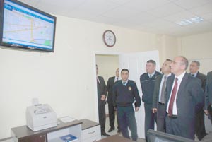 Vali İbrahim Özçimen daha sonra araç takip sistemi takılan Bölge Trafik Araçlarının günlük seyirlerini izledi. 58 araca takılan araç takip sisteminin son derece verimli ve işleri kolaylaştıracak bir sistem olduğunu söyleyen Vali İbrahim Özçimen, şu şekilde konuştu: ?Emniyet Teşkilatı Yardımlaşma Derneği bir kaynak temin ederek 58 ekip aracımıza araç takip sistemi taktırdı. Bu sistemle biz araçlarımızın hareketlerini izleyebiliyoruz. Bundan önce araçlara bir olay çıktığında anons geliyordu. Bu sistem sayesinde şimdi zaman kaybı önlenerek, en yakındaki araçlar olay yerine yönlendirilecek. Vatandaşlarımız rahat olsunlar. Herkes görevini en iyi yapma konusunda takip altında?