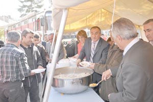 Protokol konuşmalarının ardından Kızılay çalışanları, meydanda halka etli pilav dağıttı.