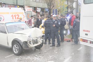 Valilikten Cici Taksi istikametine giden bir araç yolcu taşıyan Abant Birlik otobüsüne yandan çarptı. Atatürk Bulvarı?nda seyreden Volkan Yıkılmaz idaresindeki 71 DN 066 plakalı araç, Karamanlı Mahallesi?nden Atatürk Bulvarı?na geçmekte olan Mehmet Özsoy idaresindeki 14 M 0670 plakalı Abant Birlik otobüsüne yandan çarptı. Kazada can kaybı yaşanmazken araç sürücüsü Volkan Yıkılmaz şoka girdi. Kazada kafası cama çarpan Volkan Yıkılmaz 112 Acil ekiplerinin ilk müdahalesinin ardından hastaneye kaldırıldı. Abant Birlik otobüsündeki yaklaşık 15 yolcu ise panik yaşadı. Olayla ilgili soruşturma başlatıldı.
