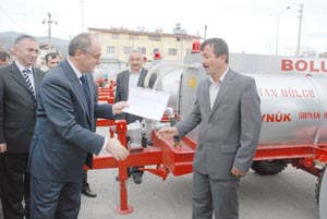 Orman Genel Müdürlüğü, köylülere, yangınlara müdahalede kullanılması amacıyla su tankı verdi. Tankların teslimi amacıyla Bolu Orman Bölge Müdürlüğü'nün sosyal tesislerinde tören düzenlendi. Törene, Vali İbrahim Özçimen, AK Parti Bolu milletvekili Yüksek Coşkunyürek, Bolu Belediye Başkan Yardımcısı İsmail Yamantürk, AK Parti Bolu İl Başkanı Ali Ercoşkun ve diğer davetliler katıldı.