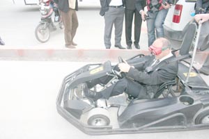 Özçimen, taktığı gözlükle, hazırlanan özel pistte bir müddet go-kart kullandı. Özçimen, gözlüklerle ilgili olarak, ?Gerçekten korkunç ve bulanık oluyor? dedi. Bolu İl Emniyet Müdürlüğü Trafik Tescil ve Denetleme Şube Müdürlüğü tarafından alkollü araç kullanırken oluşan görme bozukluğunu ortaya koyan, eğitim amaçlı yeni gözlükler işal edildi. Hükümet Meydanı?nda hazırlanan özel pistte go-kart kullanılarak gözlüklerin tanıtımı yapıldı. Bolu Valisi İbrahim Özçimen, İl Emniyet Müdürü Tahir Bayındır, Bolu Şoförler ve Otomobilciler Odası Başkanı Nihat Alpat Öztürk de tanıtıma katıldı. Gözlüklerin tanıtımını yapan Vali İbrahim Özçimen, trafikteki kazalardan dolayı her gün büyük acıların yaşandığını söyledi. Vali Özçimen, şunları kaydetti; ?Bu acılar özellikle trafik teröründe yaşanıyor. Bu acılarla kıyaslanmayacak oranda trafik teröründe gençlerimizi, yetişmiş kişilerimizi kaybediyoruz. Burada İl Emniyet Müdürlüğü Trafik Şubesi olarak, alkol kullanan kişilerin hangi seviyede ne kadar görüntü kaybına uğradıklarını göstermek amacıyla böyle bir etkinlik düzenledik. Bu amaçla özel gözlükler yaptırdık. Bu gözlükleri ortaokullarda, liselerde, sürücü kurslarında kullandıracağız ve alkol aldıktan sonra araç kullanılmamasını sağlamaya çalışacağız. Önce insanlarımız alkol alınca ne hale geldiklerini, alkol alınca bu şekilde olacağını anlamalarını istiyoruz. Bugün bunu ben de denedim ve gerçekten korkunç bir bulanıklık oluyor. Bu halde önünü bile göremezken, insanlarımız bir de sürat yapıyorlar. Alkollü sürücüler, kendi hayatlarını değil herkesin hayatlarını tehlikeye atıyorlar. Aynı zamanda alkol alan kişi bir de toplu taşıma aracının şoförüyse düşünün ki bu alkollü sürücü 40-45 kişinin hayatını tehlikeye atıyor. İşte biz de bu konuda toplumsal duyarlılığı artırmak için böyle bir etkinlik düzenledik.? Bolu Şoförler ve Otomobilciler Odası Başkanı Nihat Alpat Öztürk de gözlükleri takarak go-kartı kullandı. Pistte ilerlemekte güçlük çeken Öztürk?e bir görevli yardım etti. Öztürk, bu şekilde araç kullanmanın çok zor olduğunu kaydetti. Vatandaşlar da gözlükleri takarak go-kartı sürdü.