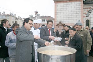 Gerede Belediyesi?nin yemekhanesinde hazırlanan Aşure tatlısı, yemekhane görevlileri tarafından Geredelilere ikram edildi. Gerede Belediye Başkanı Ömer Baygın ve Belediye Başkan Yardımcısı Ali Kemal Atay aşure dağıtımı yaparken vatandaşlar, belediyeye teşekkür ettiler. AKP İlçe Başkanı Avukat Fehmi Küpçü ve Belediye Meclis Üyelerinin de katıldığı aşure ikramının sonunda Gerede Müftüsü Şükrü Kabukçu ?Aşure Duası? etti.