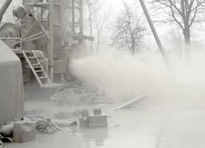 Örencik Köyü?nde özel bir firma tarafından sıcak su bulmak amacıyla başlatılan sondaj çalışmasında 362 metre derinliğe inildiğinde sıcak su yerine gaz çıkmaya başladı.