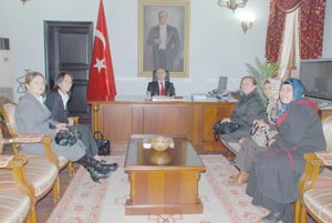 AKP Kadın Kolları Başkanı Hatice Dinç ve Yönetim Kurulu Üyeleri Vali İbrahim Özçimen?i makamında ziyaret etti. Vali İbrahim Özçimen?e nezaket ziyaretinde bulunan AKP Kadın Kolları Başkanı Hatice Dinç ile Yönetim Kurulu Üyeleri kendilerini kabul ettiği için Vali İbrahim Özçimen?e teşekkür etti. Vali Özçimen de ziyaretleri için AKP Kadın Kolları Başkanı ve üyelerine teşekkür ederken, çalışmalarında başarılar diledi.
