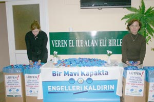 Dünya Engelliler ve Dostları Gelişim Derneği?nin başlattığı ve Bolu Belediyesi?nin de desteklediği ?Bir Mavi Kapakla Engelleri Kaldırın? kampanyası çerçevesinde yaklaşık 1 ton kapak toplandı. 250 kg kapak karşılığı olarak bir tekerlekli sandalye verilen kampanya çerçevesinde, Bolu?daki tüm kurumlara kapak toplama kutuları yerleştirildi. Engelli bireylerin tekerlekli sandalyelere kavuşabilmeleri için pet şişe, kola, sıvı sabun, şampuan, yağ kapakları biriktiren vatandaşlar, kapakları Bolu Kültür ve Sosyal İşler Müdürlüğü?ne getiriyorlar. Dünya Engelliler ve Dostları Gelişim Derneği, 250 kg karşılığında bir tekerlekli sandalye veriyor.