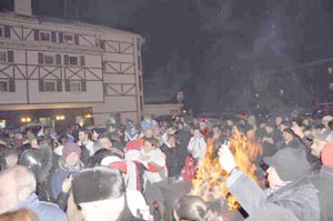 Kartalkaya?da tatilciler 2011 yılına dans ederek girerken; köylüler de eksi 10 derece soğukta tatilcilere yardım ederek girdi.