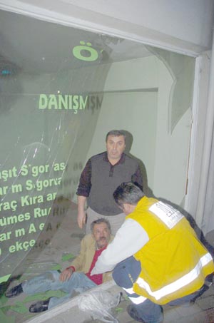 BOLUSPOR maçlarında davul amigoluğu ve düğünlerde davulculuk yapan 58 yaşındaki Cafer Şahin kaldırımda yürürken alkolün etkisi ile dengesini kaybederek işyerinin vitrin camından içeri uçtu.