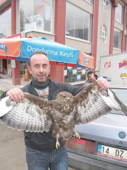 Mudurnu ilçesinde bir binanın camına çarparak ayağından yaralanan kartalı alan Selami Karakuş isimli vatandaş, yırtıcı kuşun bakımını üstlendi. Yaralı kartala evde bakan Selami Karakuş; “Kartalın yere düşüşünü gördüm ve onu alıp eve götürdüm. Baktım ayağından yaralanmış, uçamıyor. Ona evde yiyecek verdim. Aradan 4 gün geçtikten sonra bana iyice alıştı. Ben de ona gözüm gibi bakıyorum. Hayvanın acı çektiğini hissettim. Tedavi amacıyla Mudurnu’ya getirdim ama kimse derdinden anlayamadı. Kartalı evde beslemeye devam edeceğim” dedi. Karakuş, tedavisinin ardından kartalı özgürlüğüne kavuşturacağını kaydetti.