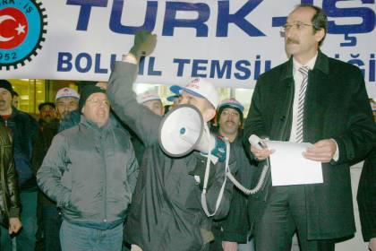 Türk-İş Bolu İl Temsilciliği, dün AKP İl ve İlçe Teşkilatı Binasının önünde bir basın açıklaması yaparak Torba Yasa Tasarısı’nın kendilerine sorulmadan Meclis’e sunulmasından dert yandı. Torba Yasa tasarısının bazı maddelerini de eleştiren Türk-İş Bolu İl Temsilcisi Yusuf Uyman; “Bir yandan sosyal diyalog deyip diğer yandan ‘dostlar alışverişte görsün’ hesabı ile işine geldiğinde bunu uygulayıp, işine geldiğinde uygulamamak kabul edilebilir bir durum değildir” diyerek tepki gösterdi.