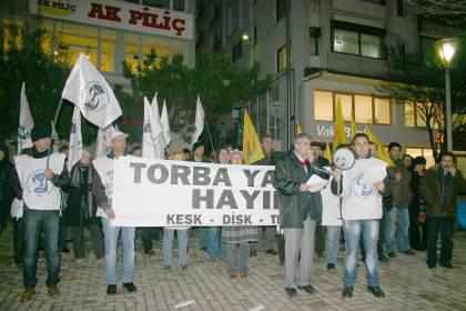 DİSK, KESK ve TMMOB dün bankalar önünde ortak bir basın açıklaması yaptılar. 3 gün boyunca Torba Yasasını protesto eden sendika ve Oda’lar bugün Ankara’da Türkiye Büyük Millet Meclisi (TBMM) önünde eylemine devam edecekler. Eyleme katılmak isteyenler için araç kaldırılacağını duyuran KESK Dönem Sözcüsü Serdar Koçyiğit, Torba Yasası Tasarısı’nın geri çekilmesi gerektiğini söyledi. Slogan atan sendika ve Oda üyeleri, ıslık çalarak ve alkış tutarak yasa tasarısını protesto ettiler.