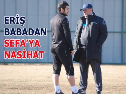Boluspor’un Adanaspor ile Pazar günü oynayacağı maçın hazırlıkları kapsamında Teknik Direktör Levent Eriş Salı günü yapılan çalışmada oyuncusu Sefa’yı saha dışına göndermişti. İkili dün yapılan çalışma öncesi bir araya gelerek kısa bir görüşme yaptılar. Dün Boluspor tesislerinde yapılan çalışma öncesi takım düz koşu yaparken, Eriş oyuncusu Sefa’yı yanına çağırarak bir görüşme gerçekleştirdi. İdman sahasının ortasında bir araya gelen ikili arasında yaşanan tebessümleşmeler idmanı izleyenlerin memnuniyeti ile karşılanırken, İdmanı izleyenler “Baba-oğul arasında olur böyle şeyler” dediler. İdman boyunca istekli olan Sefa, hocasının dediklerini harfiyen uygularken, Eriş’in de zaman zaman çalışma esnasında Sefa’ya “Aferin oğlum, bravo oğlum” diyerek motive etti.