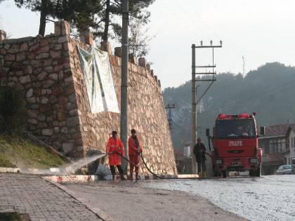 ‘Temizlik imandan gelir’ atasözünü Mudurnu itfaiye ekipleri sabahın erken saatlerinde uygulamaya koydu. Dondurucu soğukları arkada bırakarak geçirdiğimiz şu günlerde itfaiye ekipleri de değerlendirmeye koydu. Sabahın erken saatlerinde işe koyulan Mudurnu itfaiye ekipleri, yol üzerinde bulunan pislikleri yıkayarak ilçeyi daha güzel bir görünüme soktular.