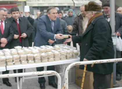 Dün saat 13.15 de belediye önünde helva dağıtıldı. Öğle saatlerinde başlayan dağıtıma ilgi büyüktü.