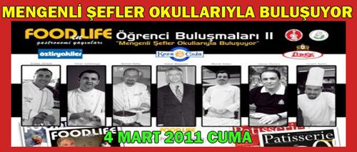 Birçok etkinlik ve organizasyona imza atan Food in Life Gastronomi Yayınları, Öğrenci Buluşmaları’na 4 Mart 2011 tarihinde saat: 15.00’de, Mengen Aşçılık ve Turizm Lisesi Konferans Salonu’nda Mengenli aşçı adayları ile devam ediyor.